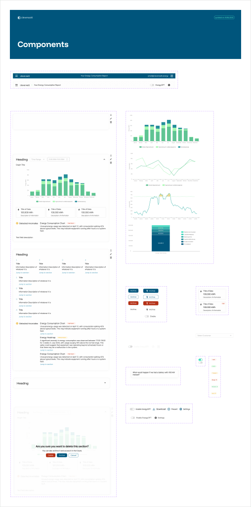 cleverwatt already had some design elements settled: some colors and typography. We increased the standardization and created a style guide & a primitive design system.