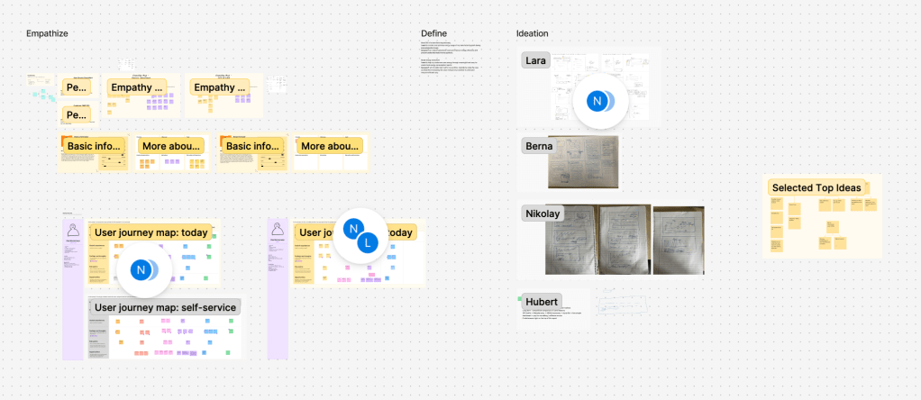 Together with my team, we started by joining in on customer calls to hear from them directly. After understanding their pain points, we created personas and a user journey map. This helped define the problem we were trying to solve. You can see the FigJam board we are using for our UX Process.