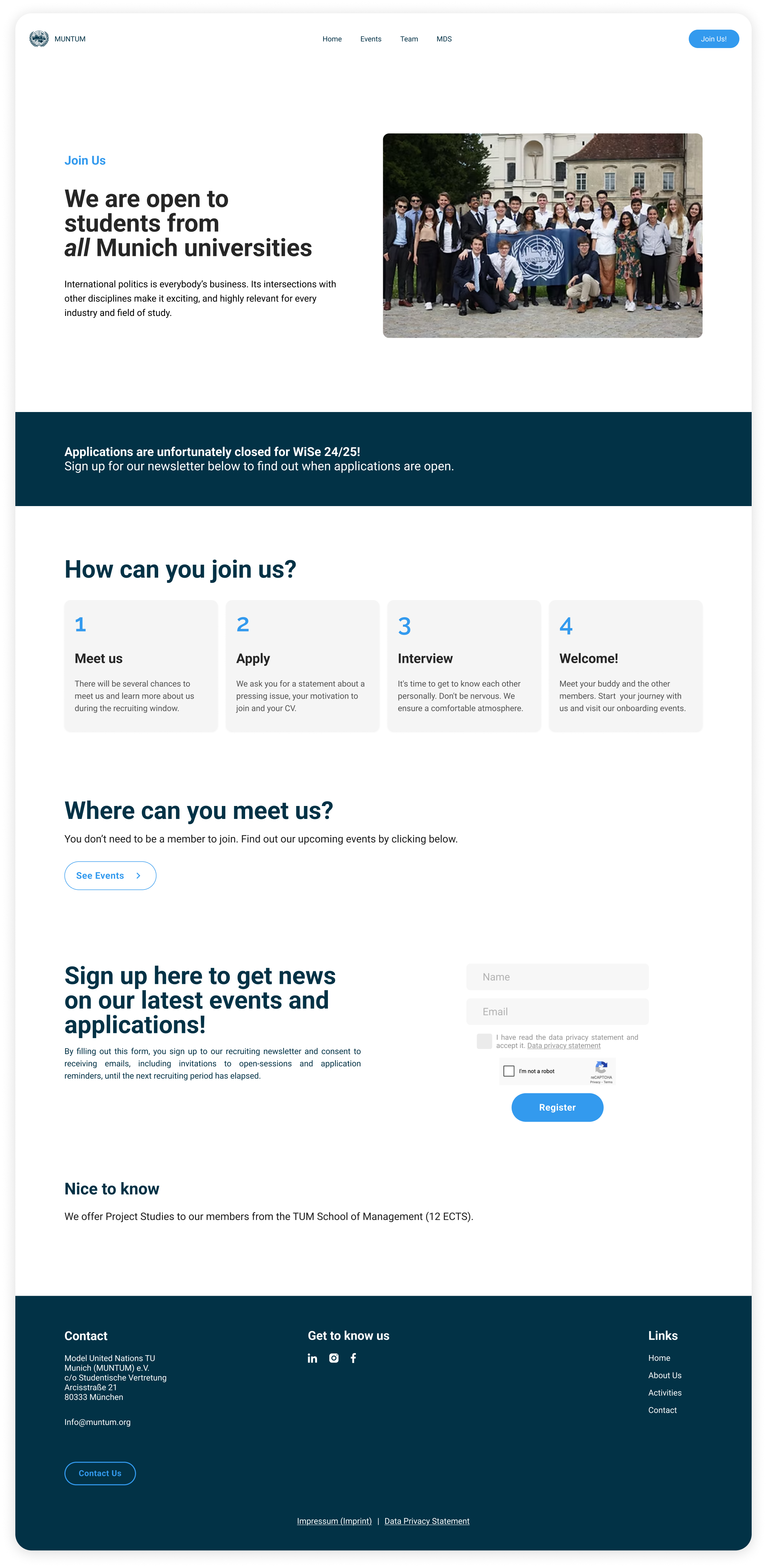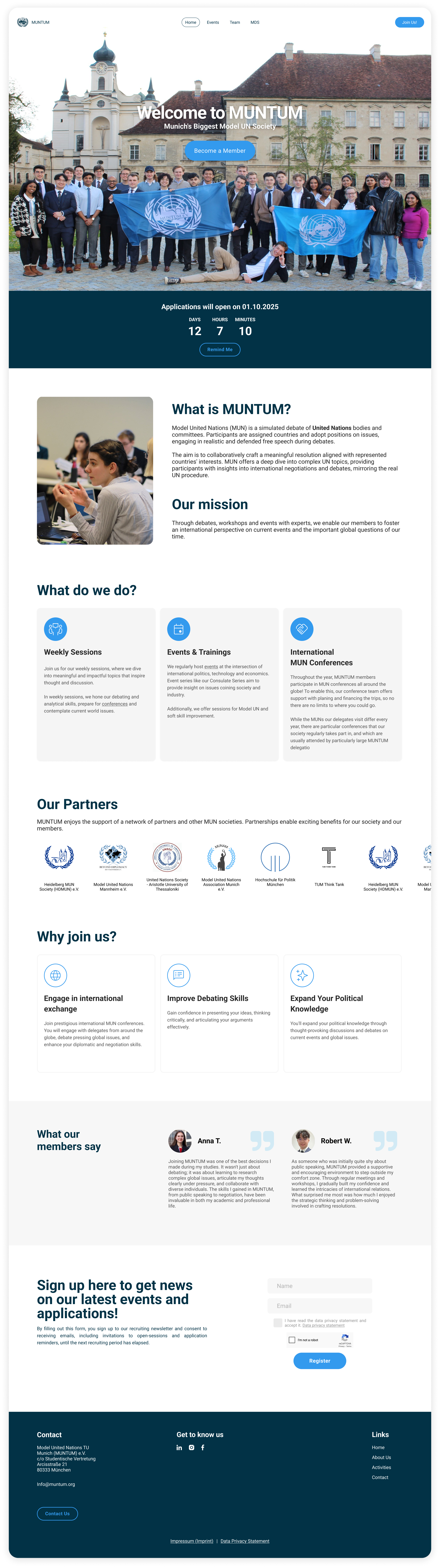 A website for a model united nations student club